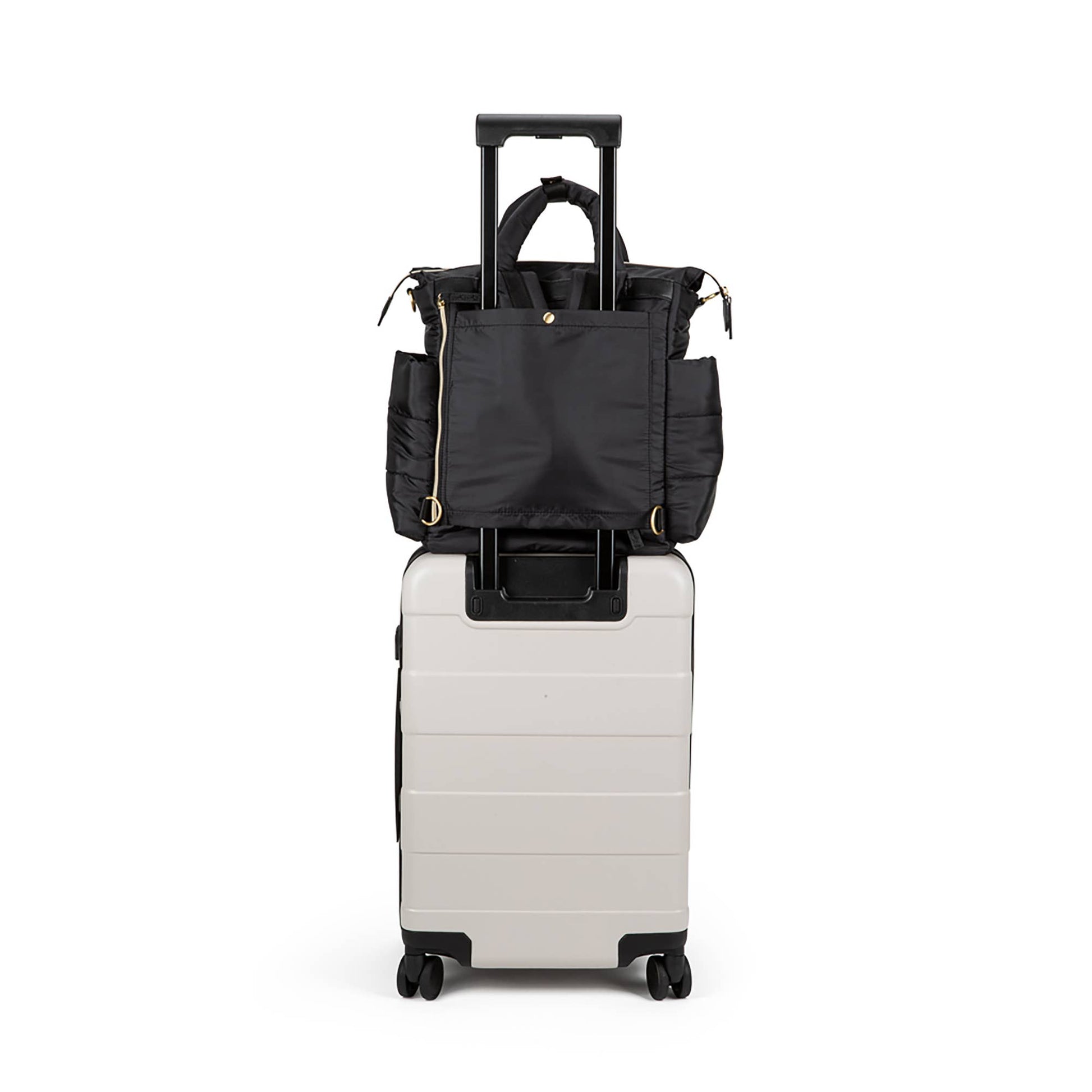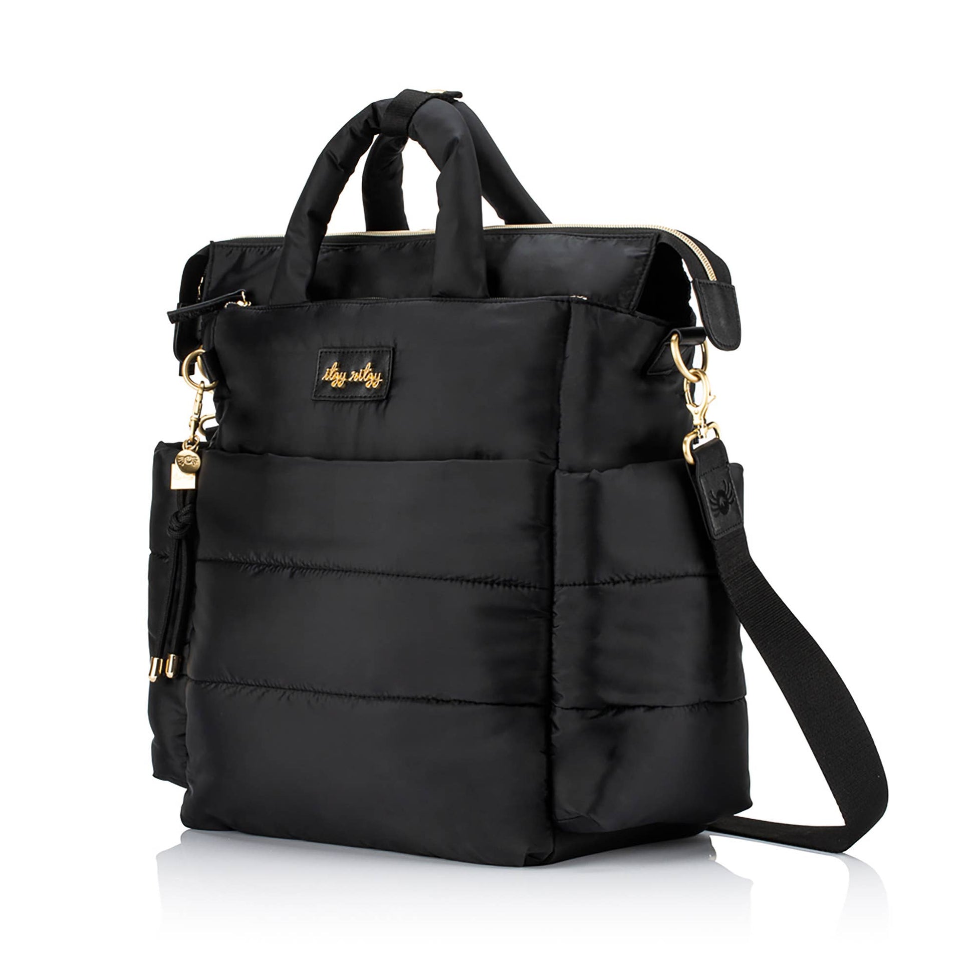 Like a cloud seamlessly changes shapes, this bag takes on many (effortless!) forms. The lightweight and airy, puffer style design easily converts from crossbody bag to tote to backpack to express your every whim. With 14 roomy and spacious pockets, this total multi-tasking bestie combines a polished aesthetic with the ease to grab and go as you take on your day. Feeling adventurous? Simply slip your Midnight Dream Convertible bag over the handle of your rolling luggage and float down the plane aisle. Peek inside for an extra special message for dreamy inspo while on the go. - 14 total pockets (8 exterior and 6 interior), including 2 insulated bottle pockets and a convenient laptop pocket - Branded rubber base helps keep the bag stable and clean - Features lightweight puffer styling with a trendy cord charm - Includes stroller straps and changing pad along with an adjustable shoulder strap - This bag also features a convenient luggage attachment & inspirational message inside